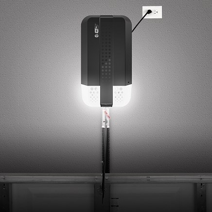 This is a smart garage door opener with a 7‑foot* rail for standard doors, a built-in camera, and MyQ smartphone control so you can open, close, and monitor your garage from anywhere. It features a 3/4 HP DC motor, durable chain drive, integrated lighting, and Security+ 3.0 encryption for safe, reliable operation.