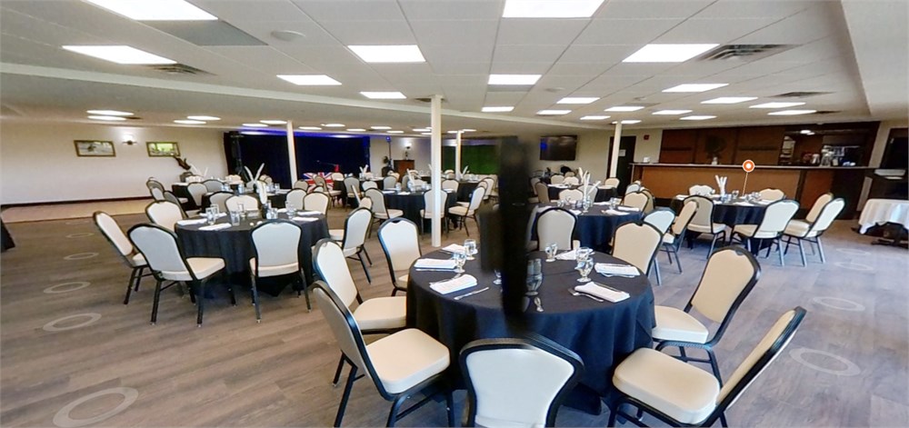 With capacity for up to 120 guests, the space features floor-to-ceiling California-style windows that open onto a private patio overlooking the 10th tee—giving you the option to create an intimate indoor setting or a vibrant indoor-outdoor experience.
