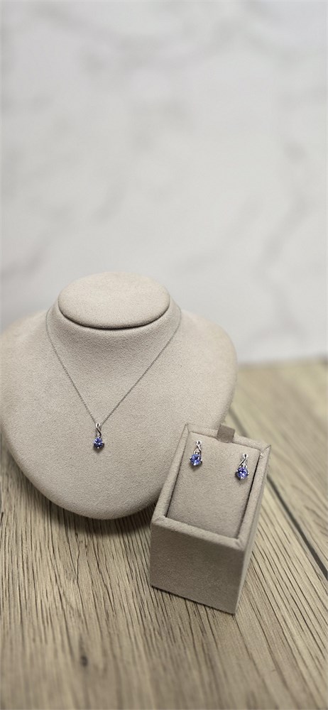 White 10k Gold Tanzanite & Diamond Pendant & Earring Set ($1115 Value) from
