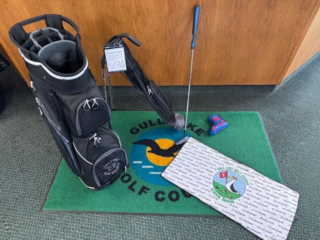 Golf Prize Pack Comes with: Sidekick stand & cart combo bag Gull Lake Golf Towel Dead Eye Putter and Putter Cover