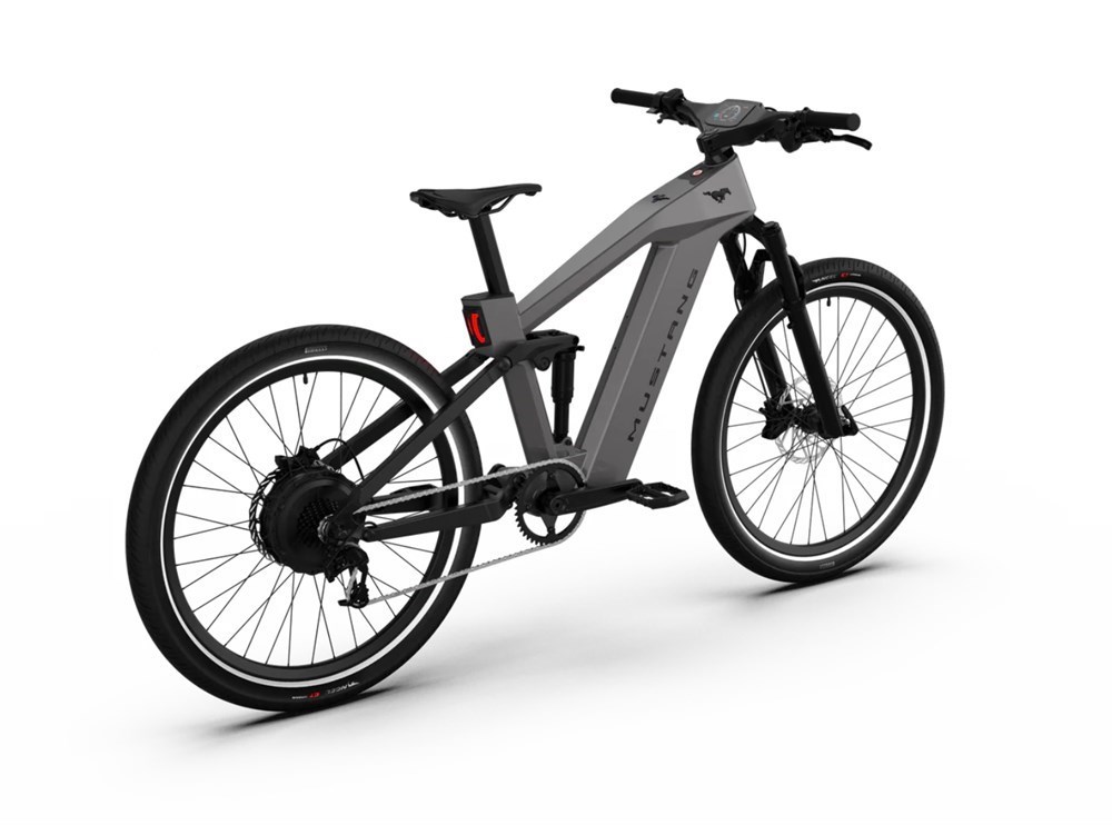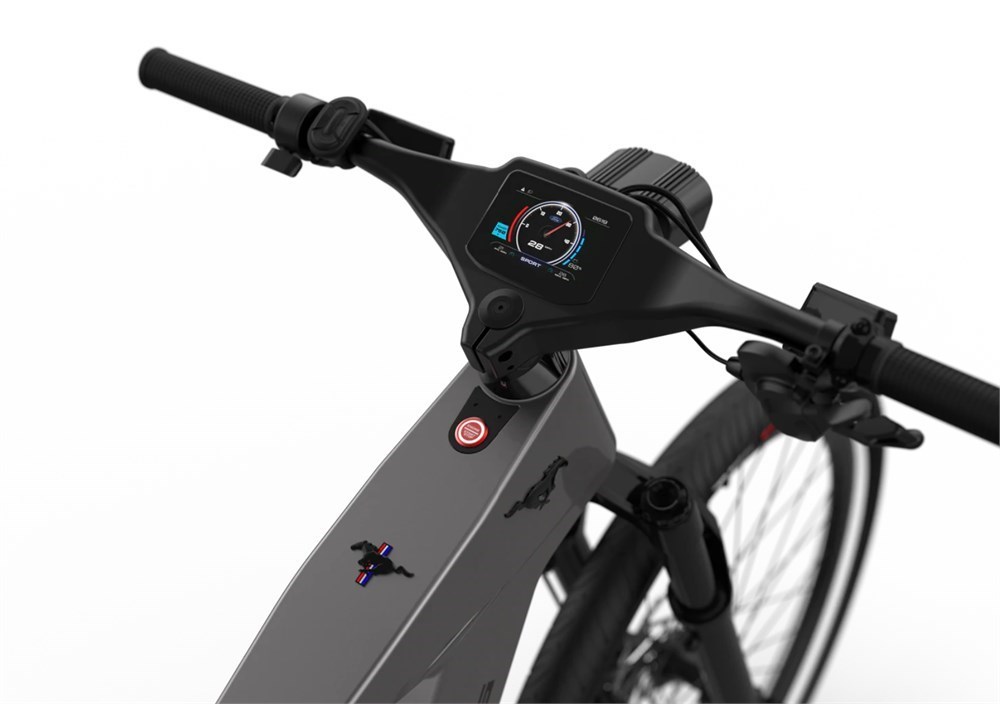 The eBike features the iconic Mustang LED Sequential Taillights and an integrated one-piece cockpit cradles a full color display with telemetry graphics inspired by Ford's digital infotainment system.