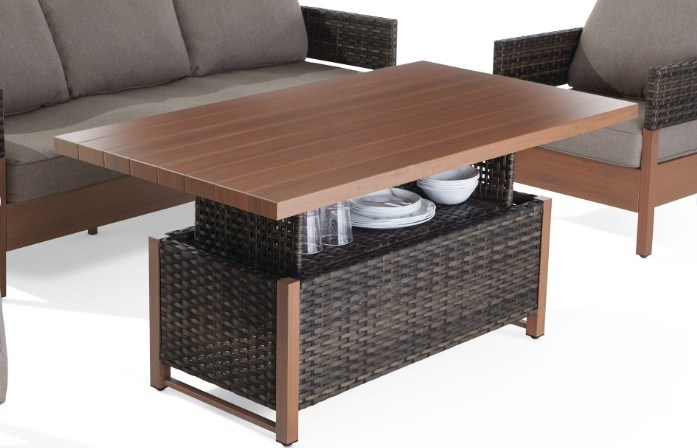The CANVAS Windermere Casual Dining Set, 4-pc, transforms any outdoor space into a stylish entertaining area. This versatile furniture set includes an adjustable height table, two armchairs, and a 3-seat sofa for relaxed alfresco dining. The rust-resistant steel frame and hand-woven, all-weather wicker withstand the elements while looking chic with faux woodgrain accents. Triple-protected cushions resist water, stains, and fading so you can dine in total comfort. With seating for 5, the sofa and armchairs feature plush layers for ultimate relaxation. Durable and stylish, this Windermere dining set from CANVAS is built to last for years of outdoor entertaining.