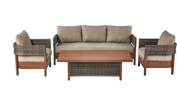 Set includes: 2 armchairs, 3-seat sofa, and adjustable table