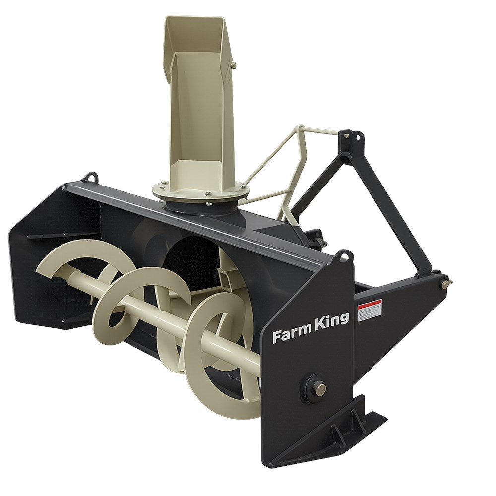 Model YC6010 60" Allied Farm King Snowblower in Grey from All West Sales. Features: Powerful 4-blade fan. Open Gearbox Shear Pin Protected 475 lb Electric Spout rotation