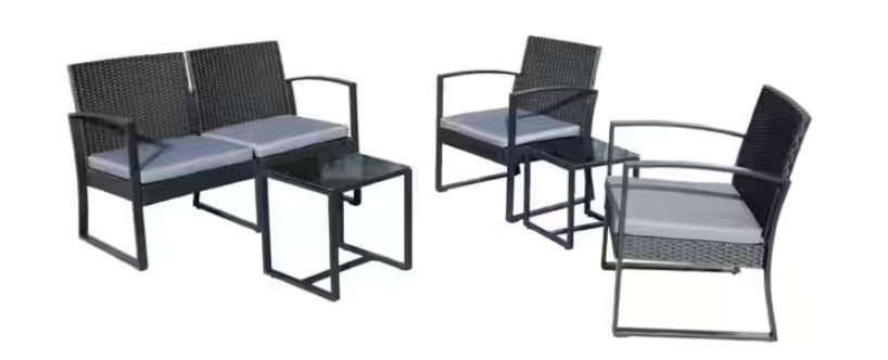 Relax in style this summer with this unique 5-piece patio set. Includes two chairs a love seat and two coffee table crafted entirely from durable weather-resistant PP injected wicker. Engineered to give you a natural-looking wicker rattan design that will complement any deck, patio, or garden. Quick assembly of your new patio set gives you more time to relay with your family or friends.