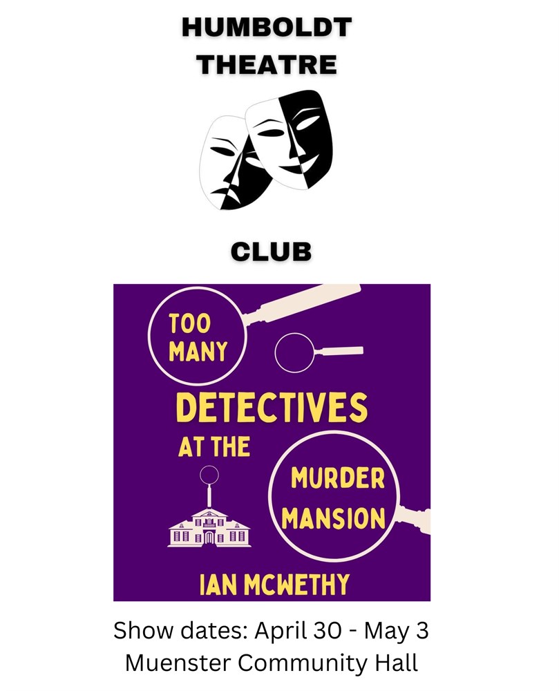Two tickets for the Humboldt Theatre Club's May 1st 7pm show of Too Many Detectives at the Murder Mansion.
