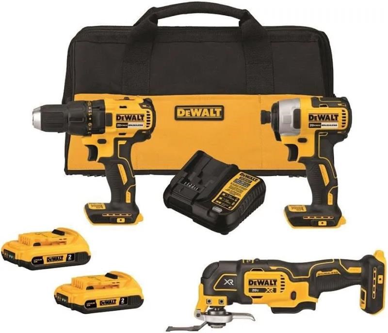 The DEWALT 20V Brushless 3-tool Combo Kit includes:
