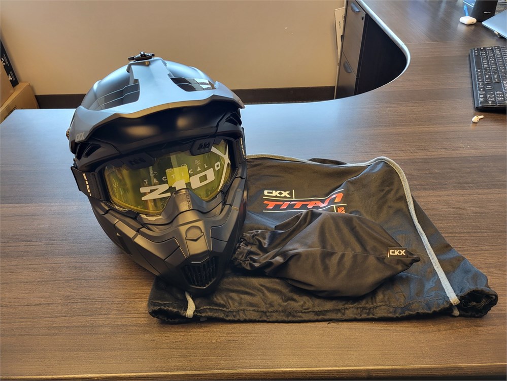 CKX Airflow Titan Helmet from G & A Rentals in Stonewall. XL Size Helmet with goggles. Matte black. Convertible to be used in summer or winter.