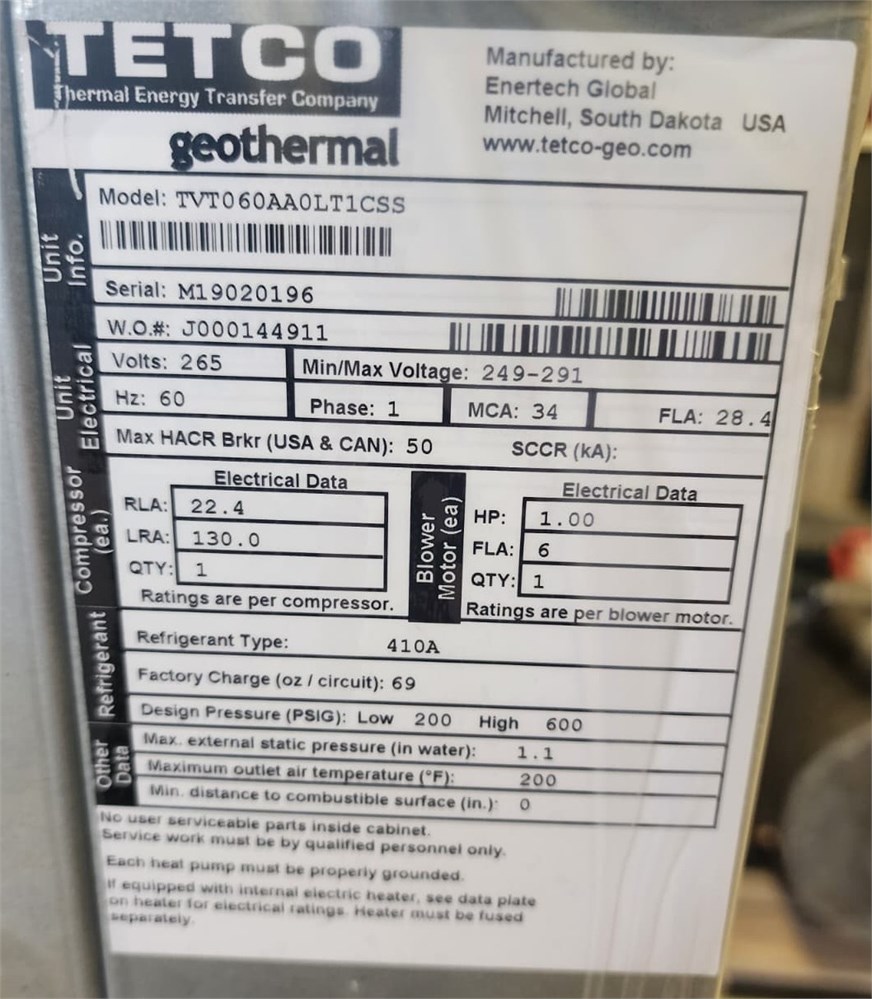 5-ton Heat Pump from Nexus Energy Products TVT060AA0LT1CSS - M19020196. 5Ton Tetco (Vertical), 2Stg, 265/60/1,w/o HWG, Lt Ret, Top Dis, ECM, Copper. 1 YR PARTS WARRANTY *Does not include Installation