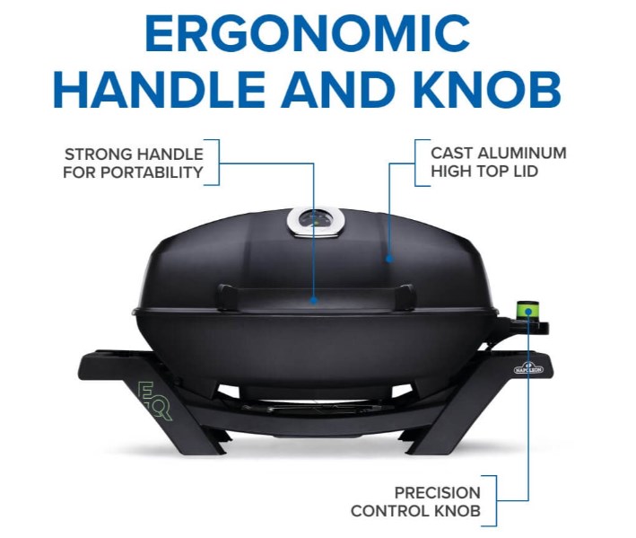 Napoleon's TravelQ™ PRO285 Portable Electric Grill is stylish with a cast aluminum, high-topped lid design lets you take portable grilling to the gourmet level. The windproof design will hold heat in. High heat searing is a snap and you'll know it's a Napoleon with the iconic WAVE™ cooking grids for those distinctive sear marks. Like your favorite cast iron skillet, the porcelain coated cast iron cooking grids heat evenly and provide a non-stick surface for your food, seasoning like a cast iron skillet. The thermostat and burners are removable for quick and easy cleaning of the porcelain drip tray. Easy to carry and set up, this grill is perfect for any adventure. You can't beat this professional grill in a portable package.